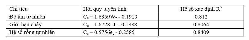 Bảng 3. Tương quan giữa chỉ số nén lún với một số chỉ tiêu cơ lý