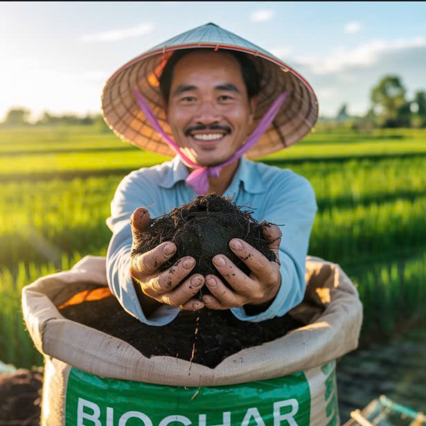 Về kinh tế, Biochar mở ra mô hình “nông nghiệp tuần hoàn” tại chỗ. Nông dân không chỉ tiết kiệm chi phí xử lý phế phẩm, mà còn giảm 30-50% chi phí phân bón, thuốc cải tạo đất. Quan trọng hơn, đất khỏe giúp năng suất ổn định và tăng. Nó tạo ra giá trị kinh tế kép: từ phế phẩm và từ năng suất cây trồng.